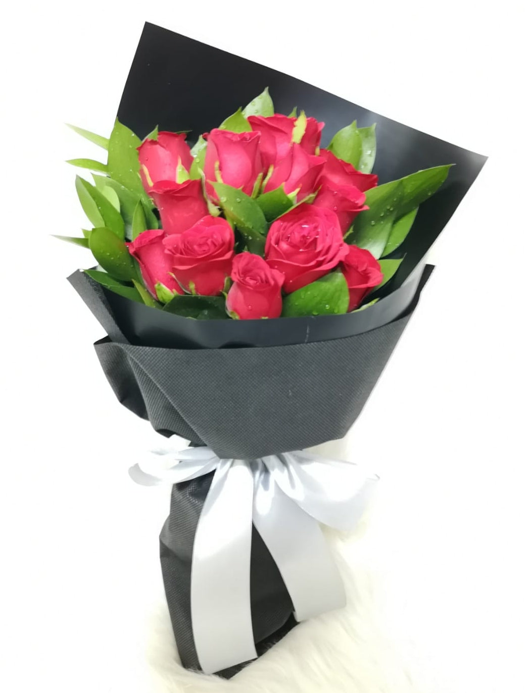 A timeless arrangement of red roses, thoughtfully paired with elegant foliage and crafted into a beautiful bouquet. Each piece is a reflection of artistry and care, designed to embody both grace and sophistication. While no two creations are ever identical, our florists ensure that every bouquet is arranged to perfection—made exclusively for you.