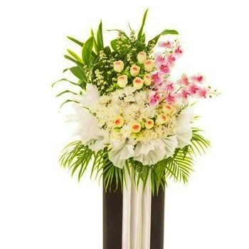 Wishing your recipient deepest symphathy and heartfelt condolence with this opening flower stand.